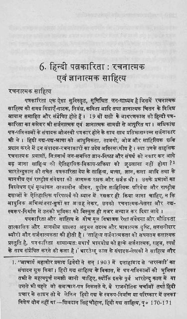 6. हिन्दी पत्रकारिता: रचनात्मक एवं ज्ञानात्मक साहित्य